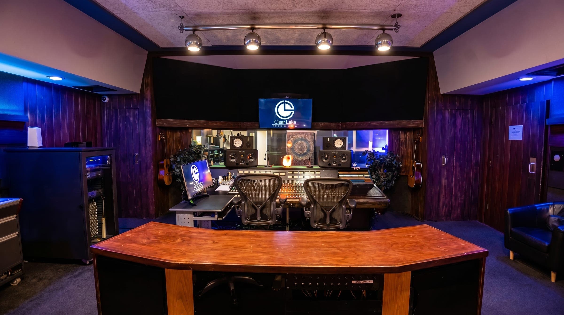 Clear Lake can accommodate just about any size recording — rock bands, jazz ensembles, string and brass sections, big bands, gospel choirs, and everything in between. Studio A's Trident Series 80b console and three iso booths handle full-band tracking; Studio B handles overdubs, vocals, and intimate sessions.