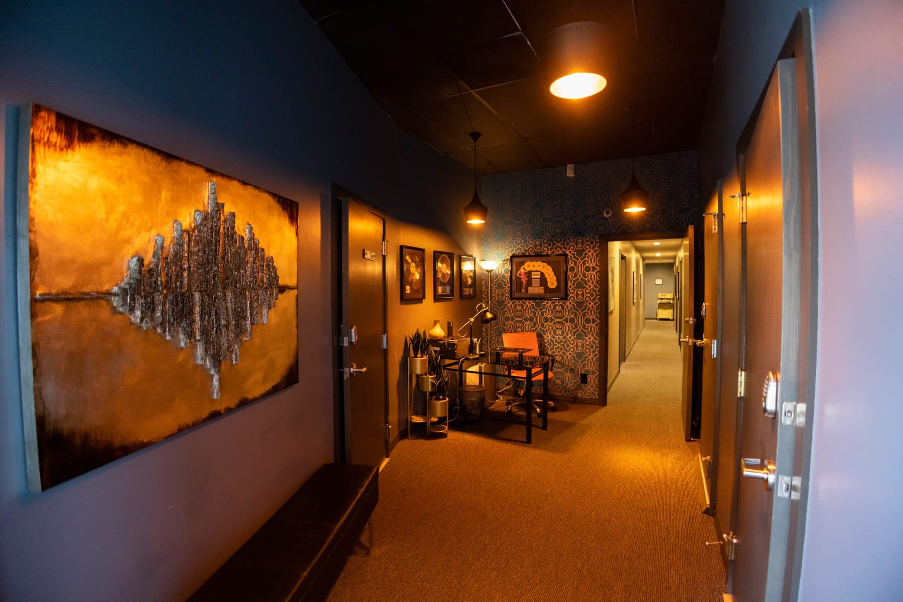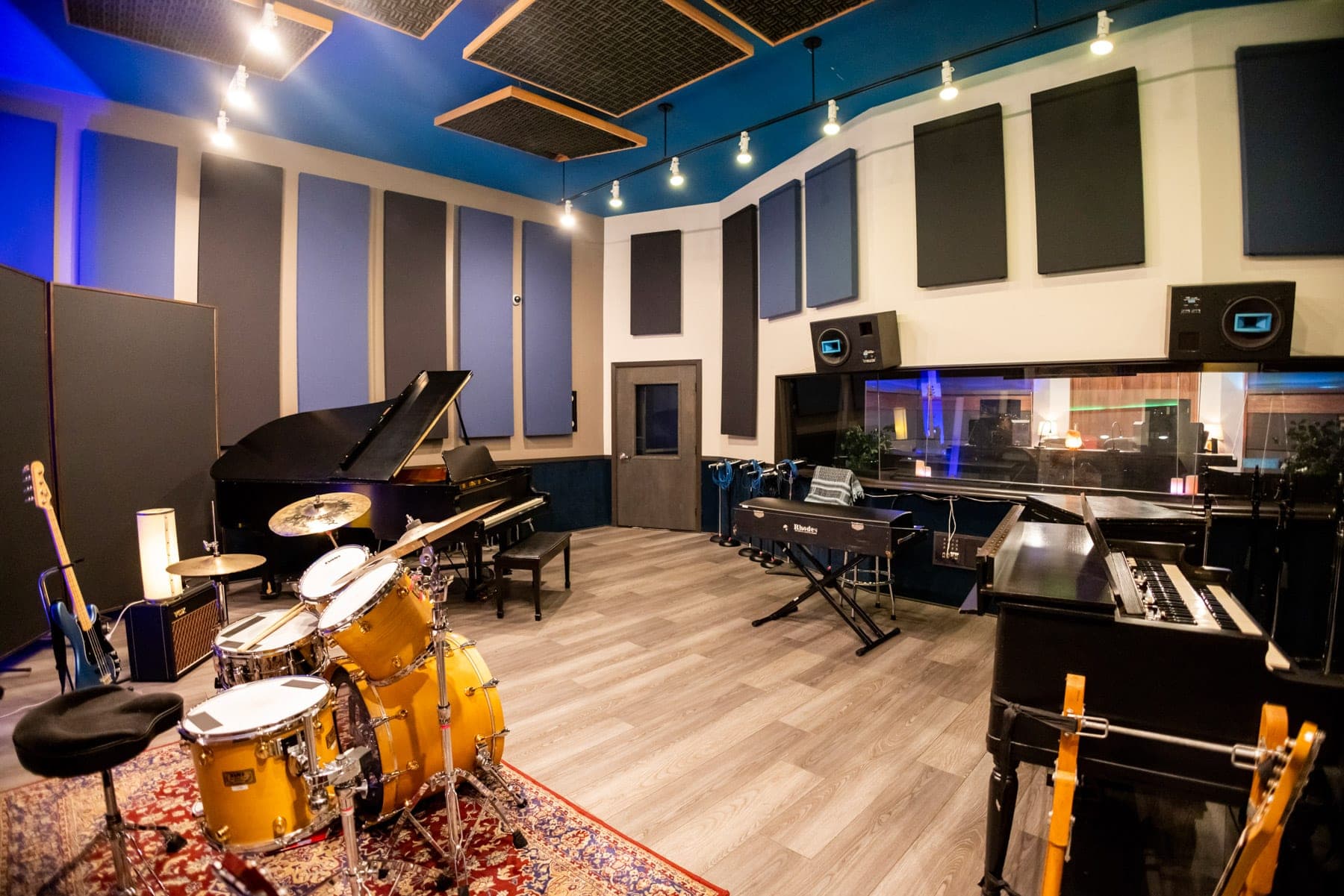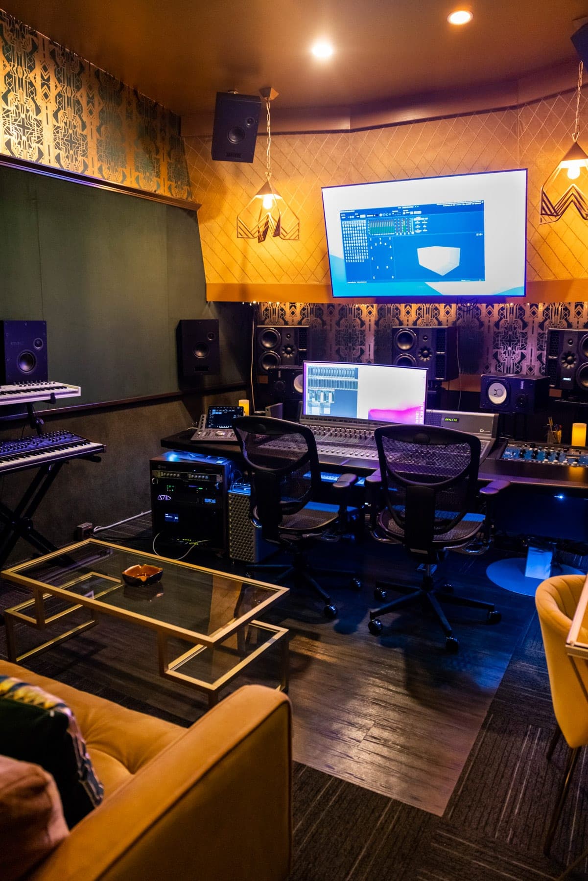 A walk through our four studios, live rooms, lounges, and grounds. Use the arrows or thumbnails to browse — click any photo to enlarge.